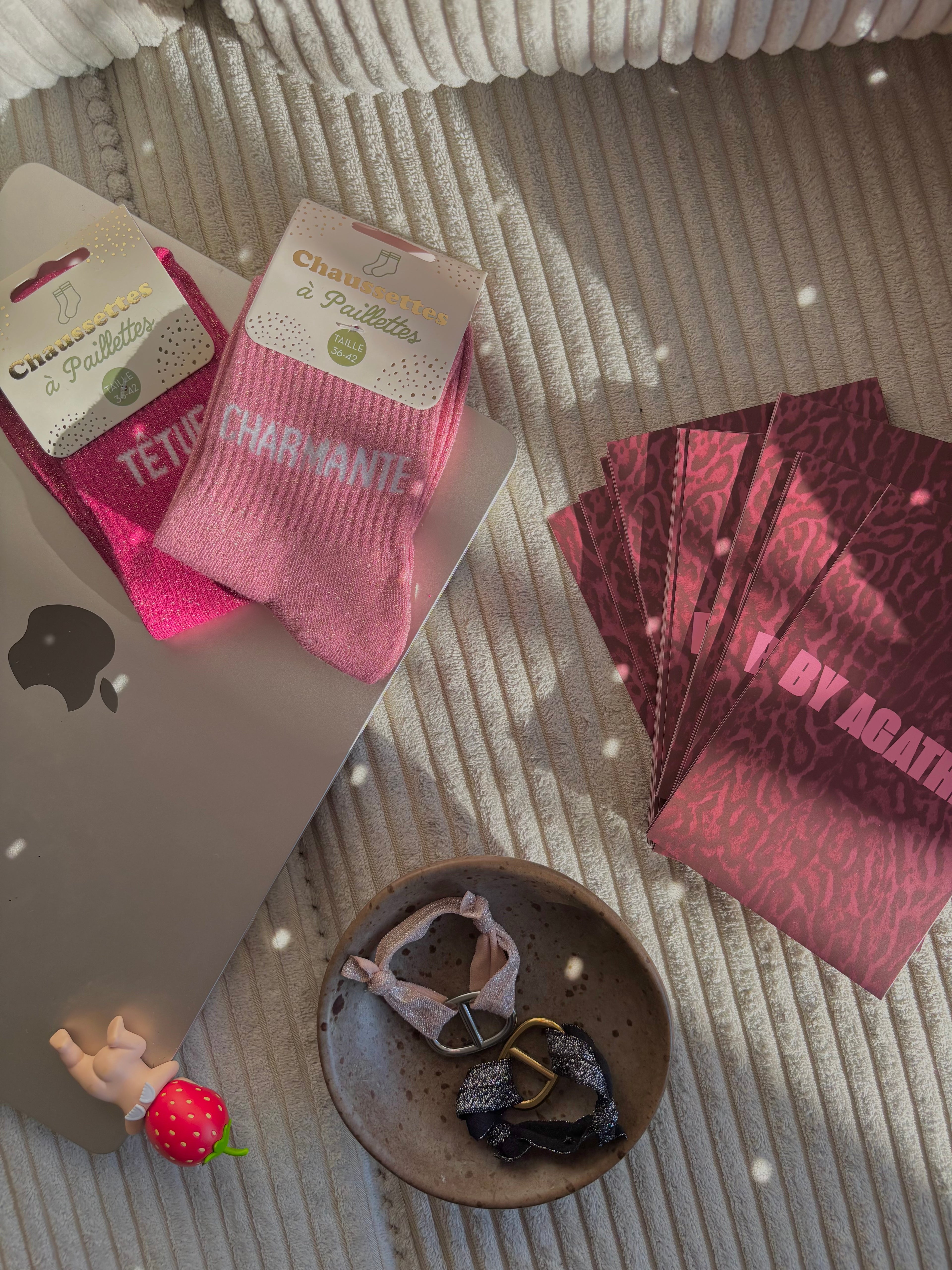 Découvrez nos pochettes surprises pour vous faire briller en toute occasion avec le duo de chaussettes à paillettes et du bracelet best seller accordé. Seulement à 15,99€